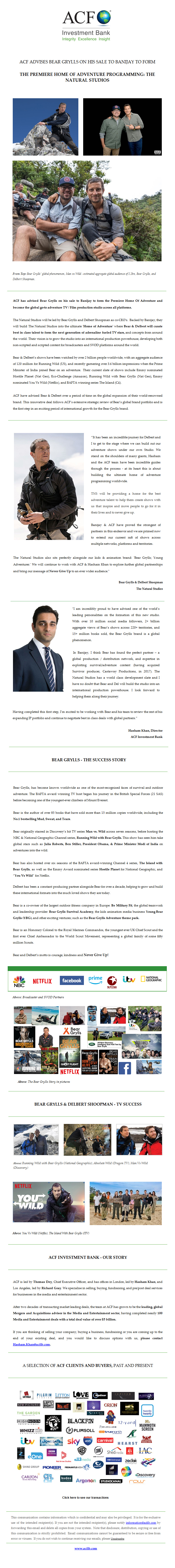 “This exciting new deal between Broke and Bones and Netflix marks an exciting period of content creation, demonstrating the strong relationship between market leading creatives and the streaming platforms. ACF brokered the deal using our strong track record, experience and access in the UK and USA scripted markets. Premium content continues to lead the market with strong deals that ACF have closed including advising Mammoth Screen on sale to ITV, Neal Street to All3Media, Left Bank Pictures to Sony, Thinkfactory to ITV, Paddington Bear to Studio Canal, New Pictures to All3Media, and Carnival Pictures to NBC Universal.”
